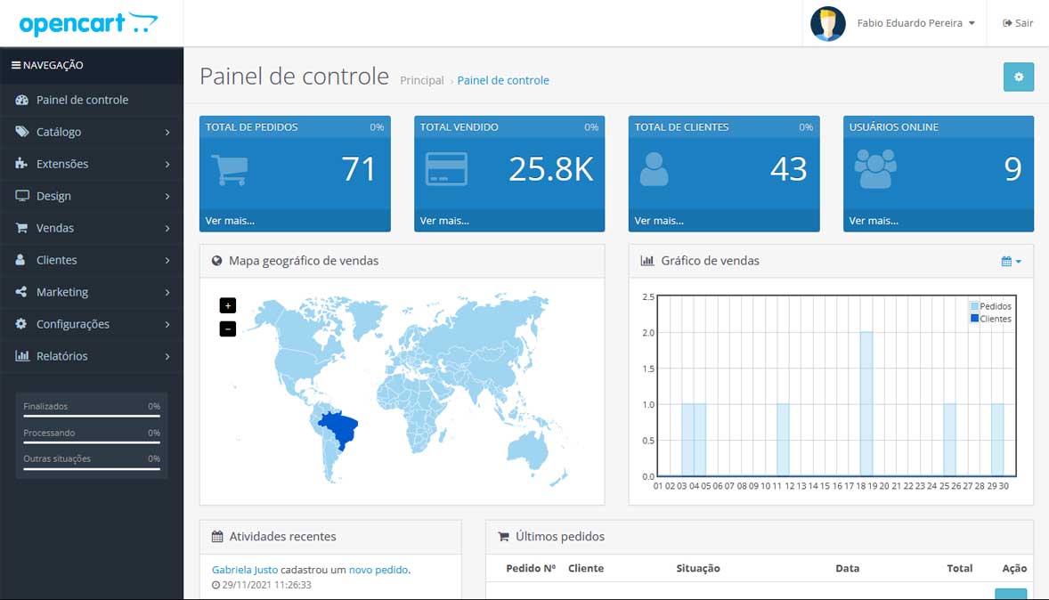 A OpenCart é uma Plataforma de Comércio Eletrônico que tem tudo que você precisa para criar, dimensionar e administrar seu negócio online. É responsiva, adaptada para todos os dispositivos móveis como celular e tablets. Oferece fácil gerenciamento de produtos, clientes, pedidos, regra de impostos, códigos de cupons, e muitas outras funcionalidades. Não tem limite de cadastro de produtos, departamentos, clientes, pedidos. Tem SEO integrado e ótimo desempenho.